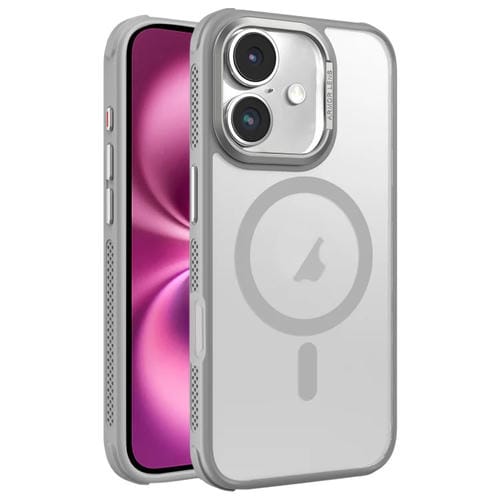 Estuche para Teléfono Magsafe iPhone 16 Plus Marco Lente Metal Esmerilado Piel Enfriamiento (Gris)