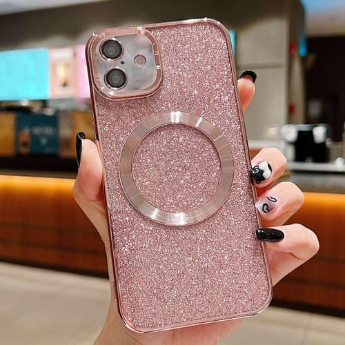 Estuche para Teléfono Magsafe con Purpurina Galvanizada para iPhone 16 Plus (Rosa)