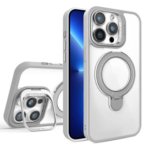 Estuche para Teléfono Magsafe con Soporte de Anillo y Protección de Lente para iPhone 13 Pro Max (Gris)