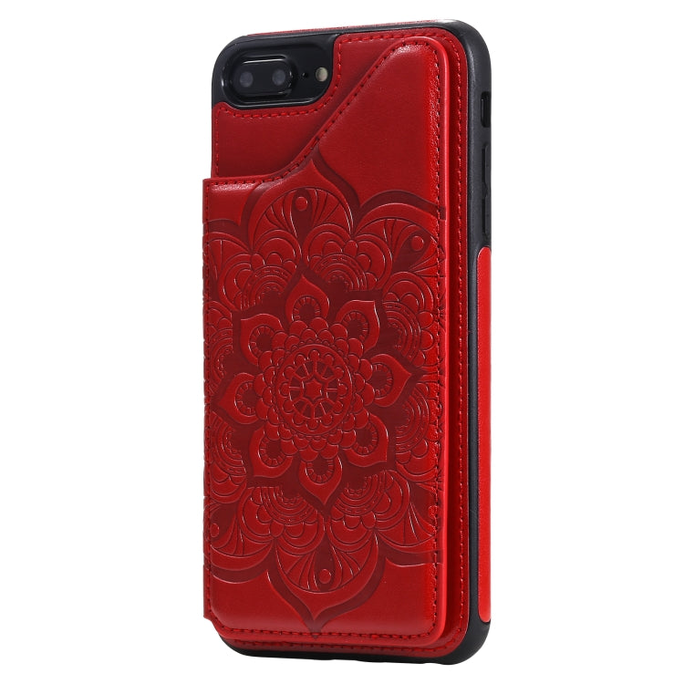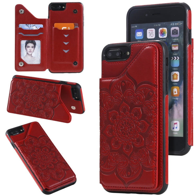 Estuche Protector iPhone 8 Plus 7 Plus Patrón Flores Soporte Tarjetas Marco Fotos (Rojo)
