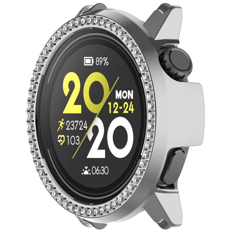 Estuche protector para reloj COROS Pace 2 de PC hueco con una sola fila de diamantes y media cobertura (plateado)