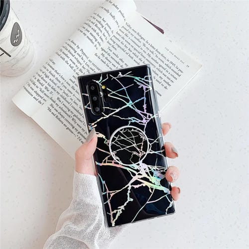 Estuche Protector TPU Galaxy Note10 + Soporte Plegable Mármol (Negro)