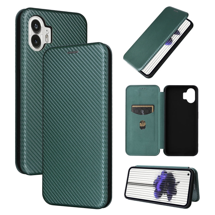 For Nothing Phone 2 Carbon Fiber Texture Flip Leather Case Cover for Phone (Green)