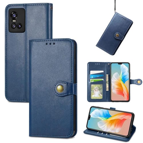 For Vivo S10 / S10 Pro Causo de Cuero de Cuero de Cuero Sólido (Azul)