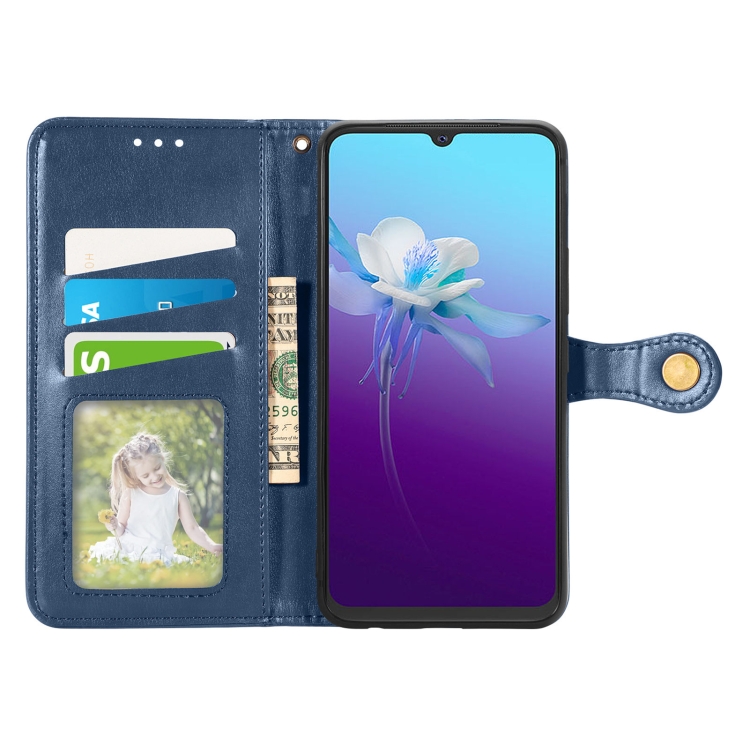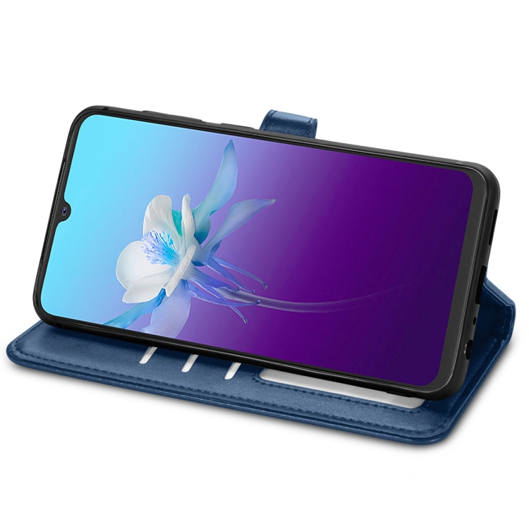 For Vivo V20 2021 Caja de la Hebilla de Cuero de Color Sólido (Azul)