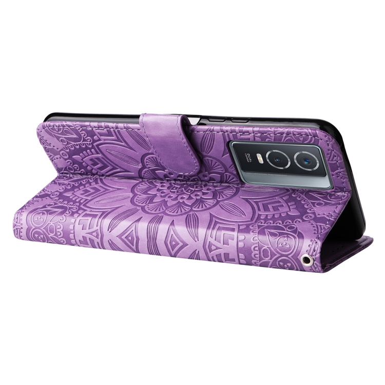For Vivo Y76S / Y76 5G Embossed Sunflower Leather Phone Case(Purple)