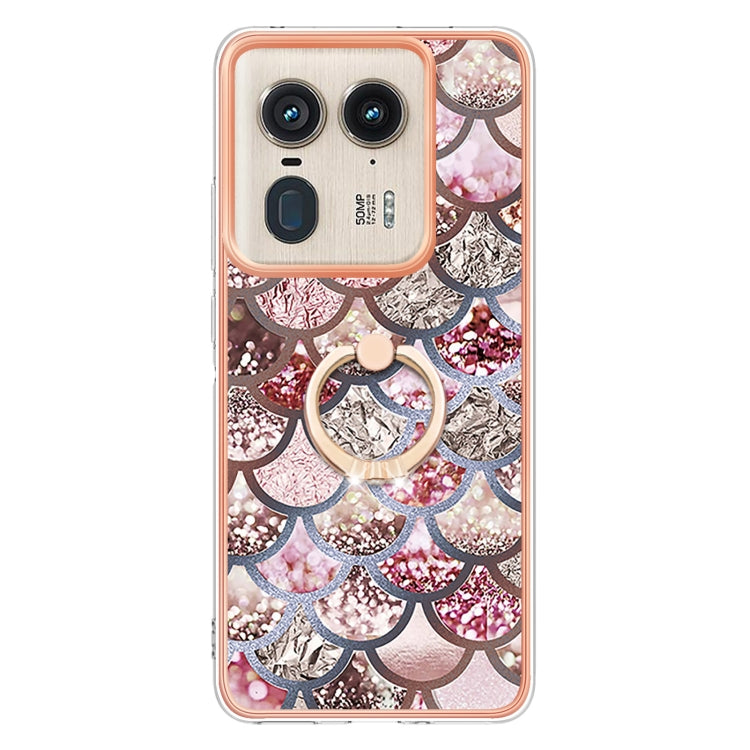 Funda TPU con Patrón Galvanoplastia y Soporte Anillo Diamantes para Motorola Edge 50 Ultra (Escamas Rosas)