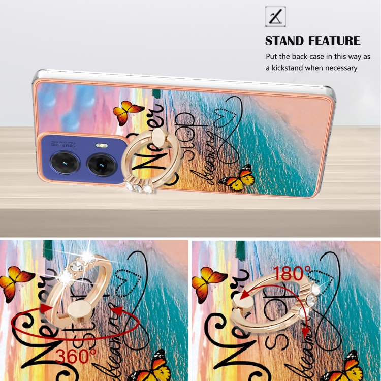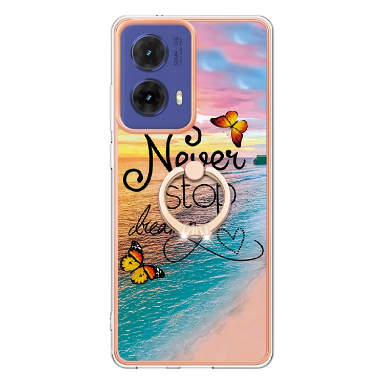 Funda a Prueba de Golpes TPU con Patrón Galvanoplastia y Soporte Anillo para Motorola Moto G85 (Mariposa Persiguiendo Sueños)