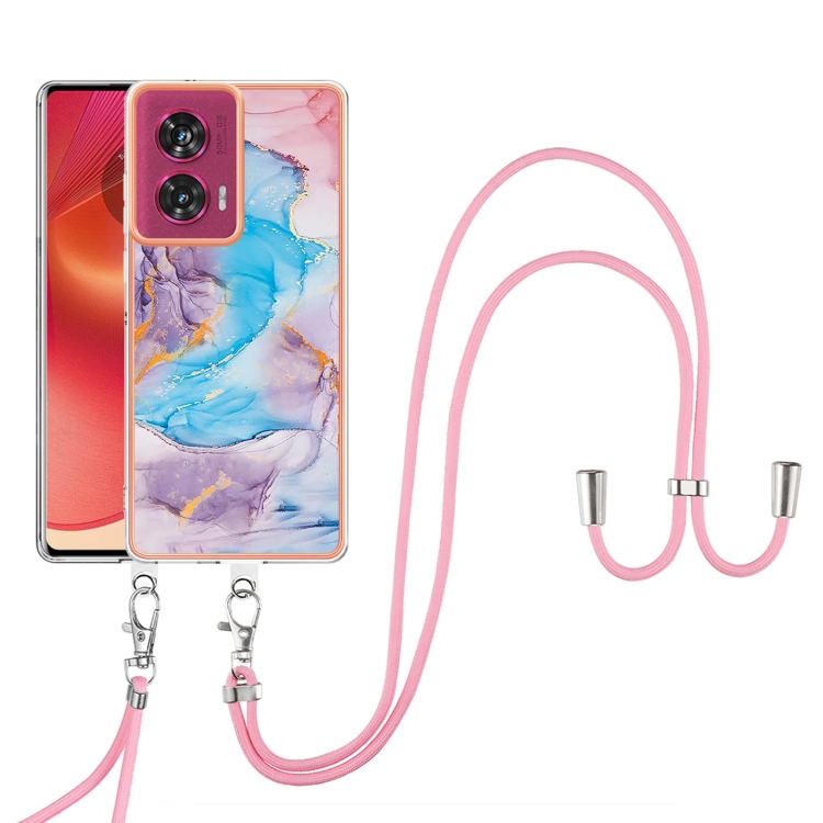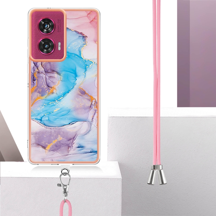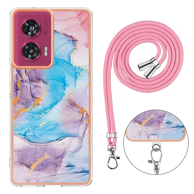 Funda TPU a Prueba de Golpes Motorola Edge 50 Fusion con Cordón (Mármol Azul Vía Láctea)