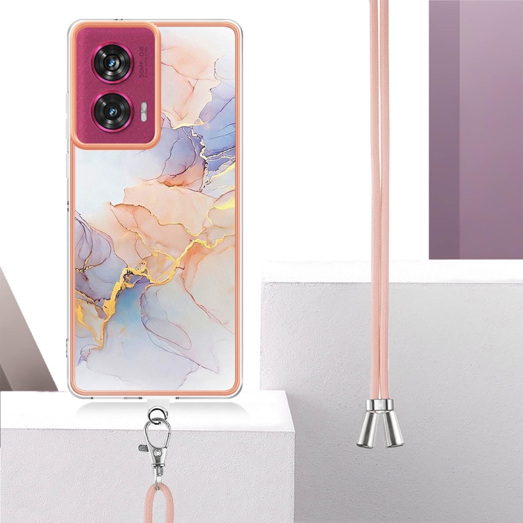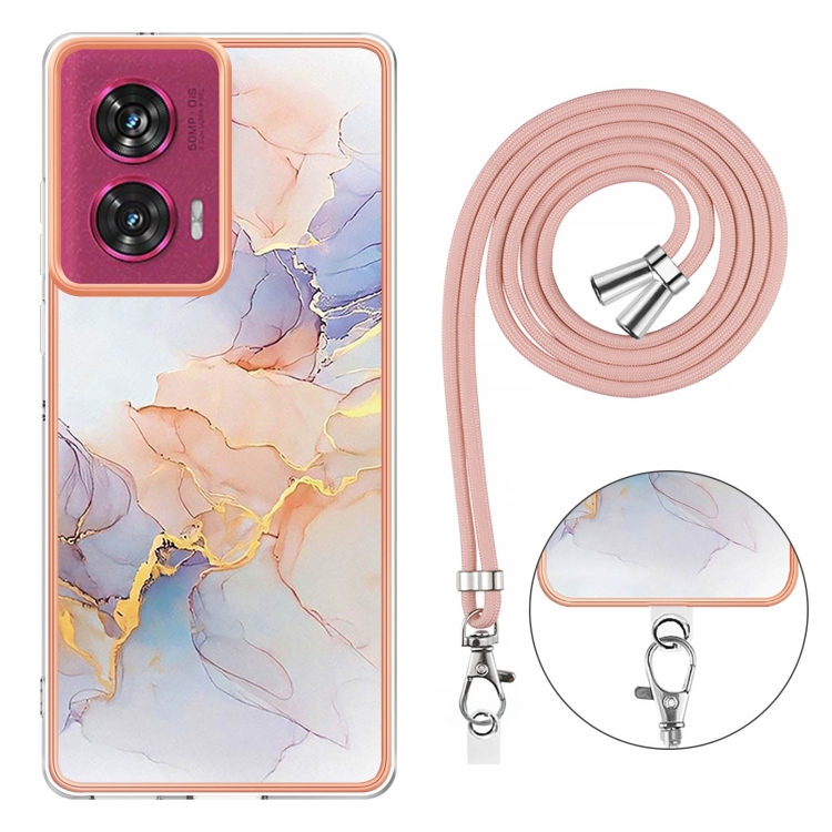 Funda TPU a Prueba de Golpes Motorola Edge 50 Fusion con Cordón (Mármol Blanco Vía Láctea)