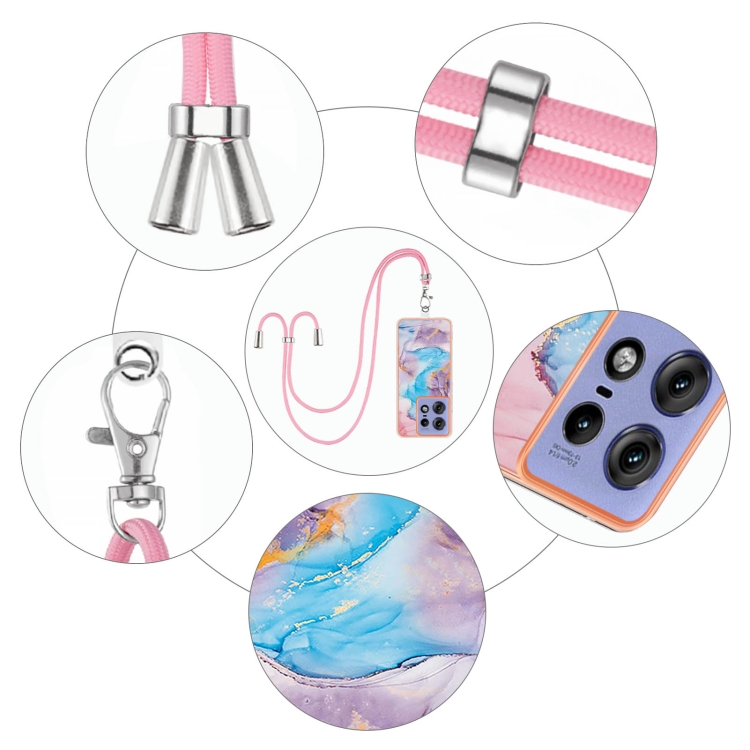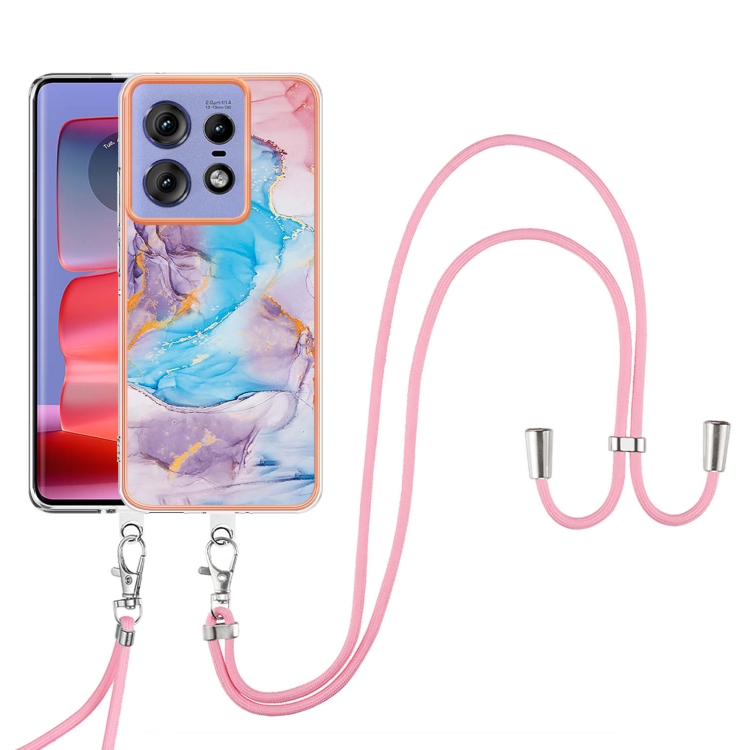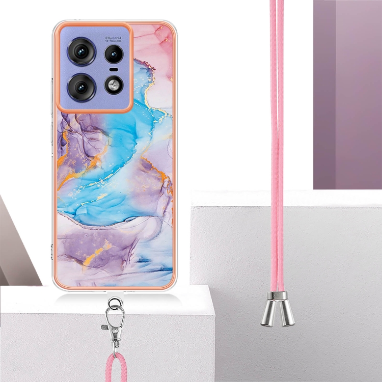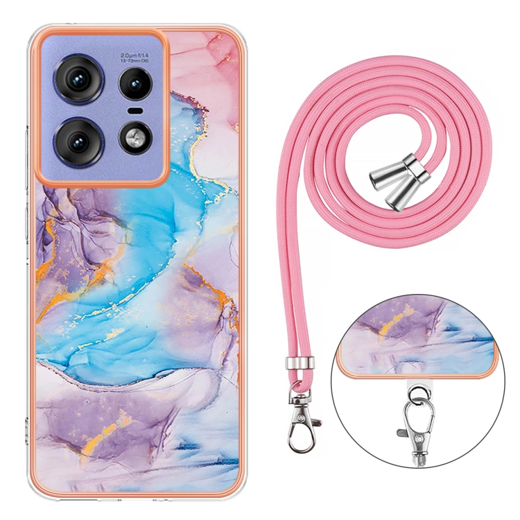 Funda TPU a Prueba de Golpes con Patrón Galvanoplastia Imd para Motorola Edge 50 Pro con Cordón (Mármol Azul Vía Láctea)