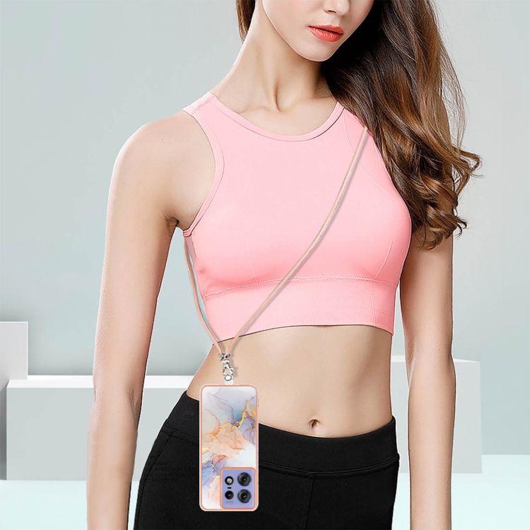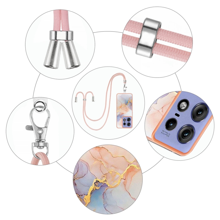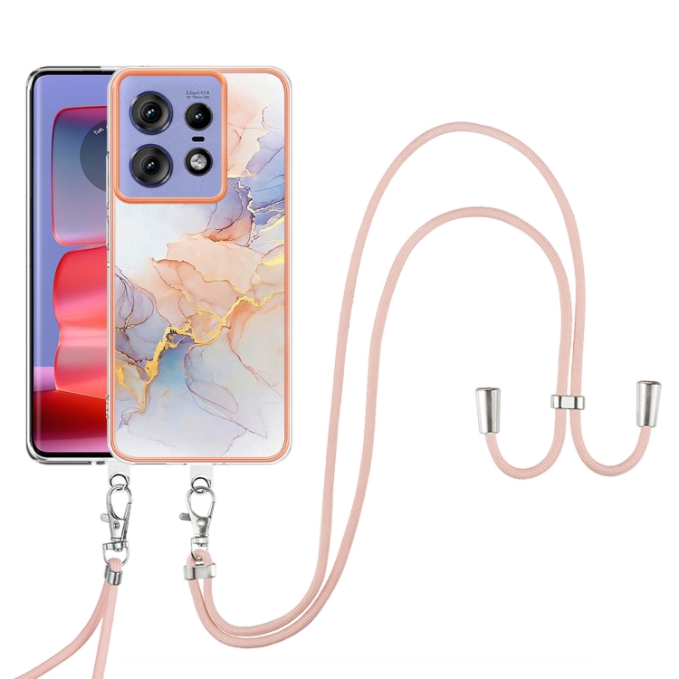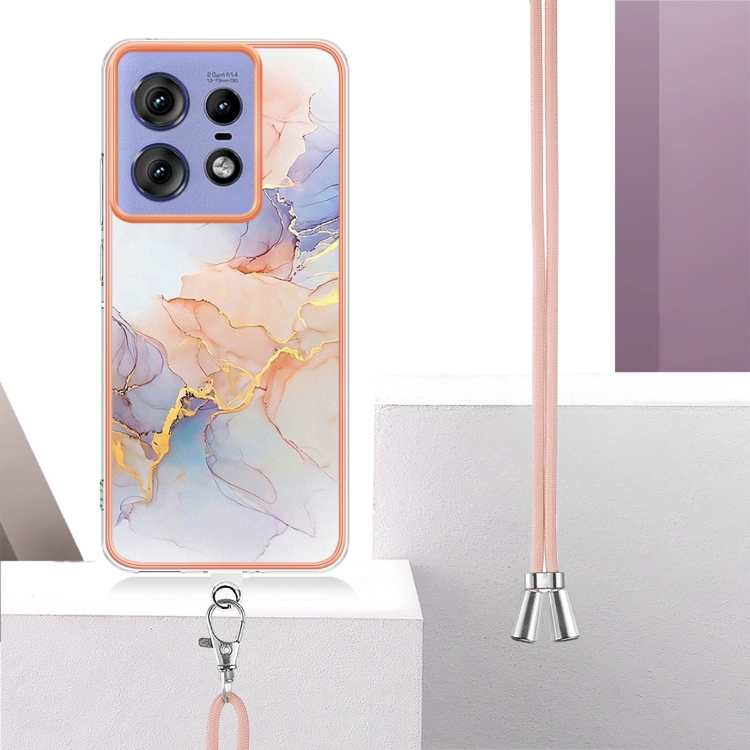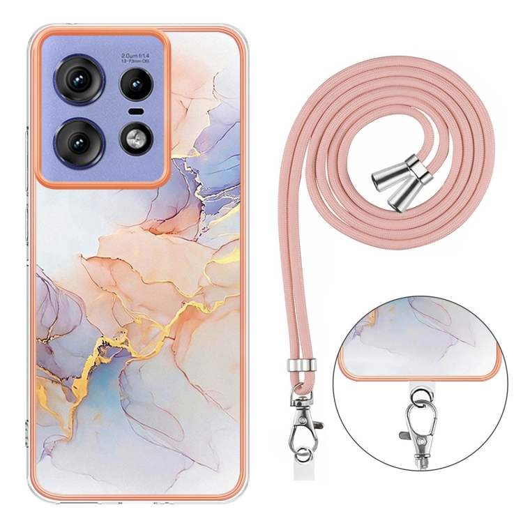 Funda TPU a Prueba de Golpes con Cordón para Motorola Edge 50 Pro (Mármol Blanco Vía Láctea)