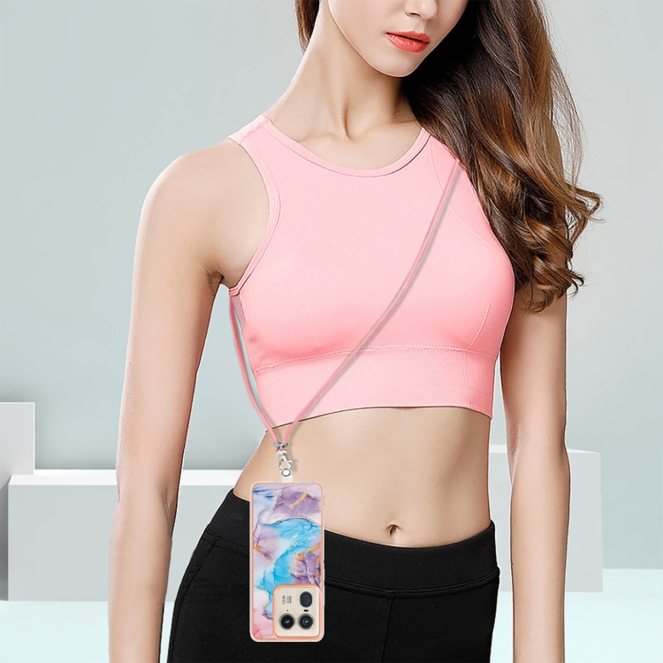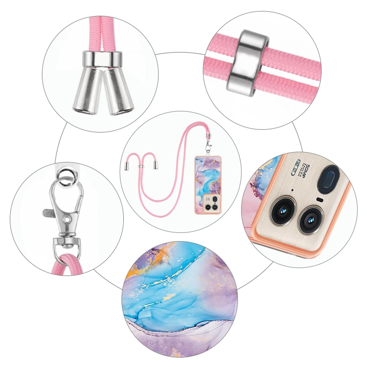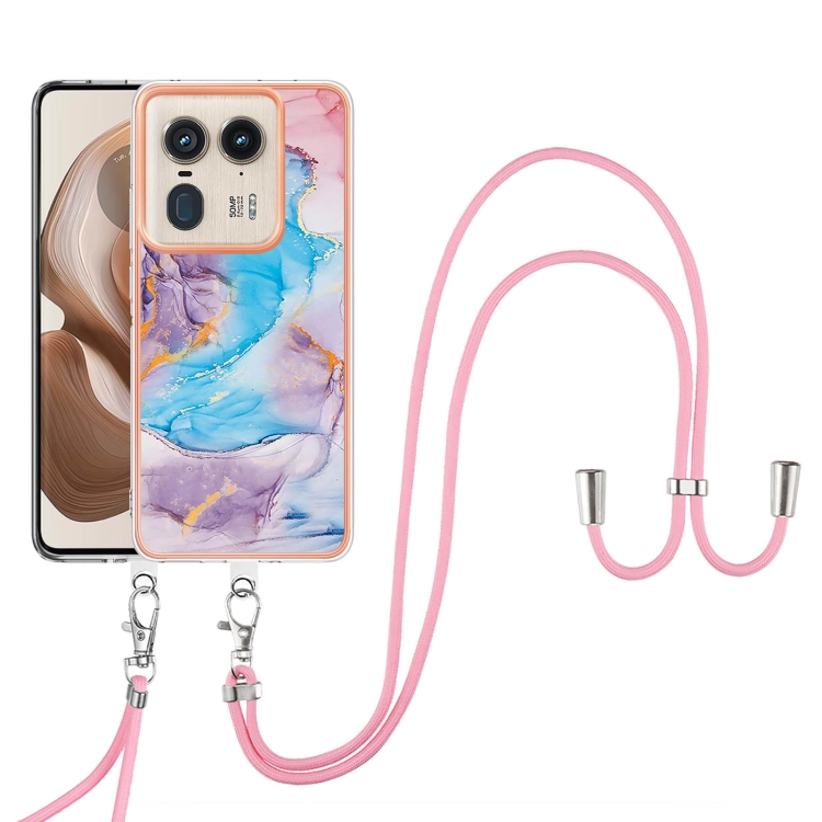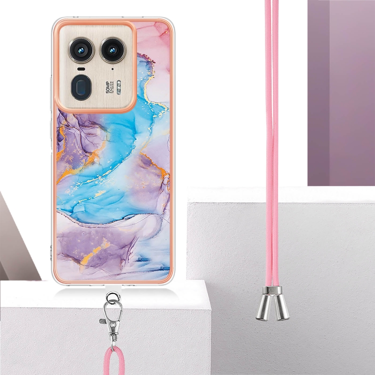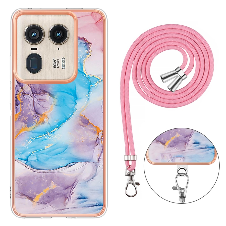 Funda TPU a Prueba de Golpes con Patrón Galvanoplastia IMD para Motorola Edge 50 Ultra con Cordón (Mármol Azul Vía Láctea)