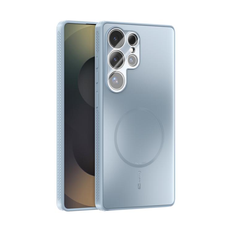 Funda ABEEL MagSafe esmerilada con disipación de calor y película para lente para Samsung Galaxy S25 Ultra 5G (azul claro)
