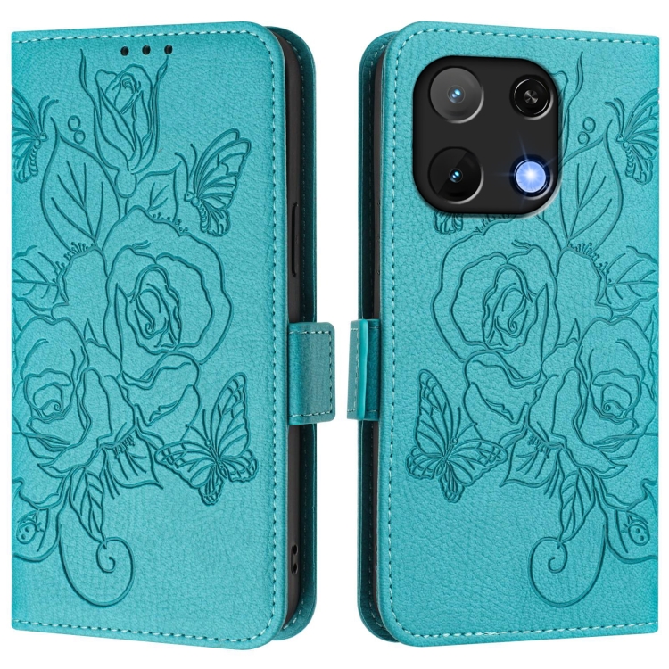 Funda Cuero Antirrobo RFID Umidigi Note 90 Diseño Rosa En Relieve (Azul Claro)