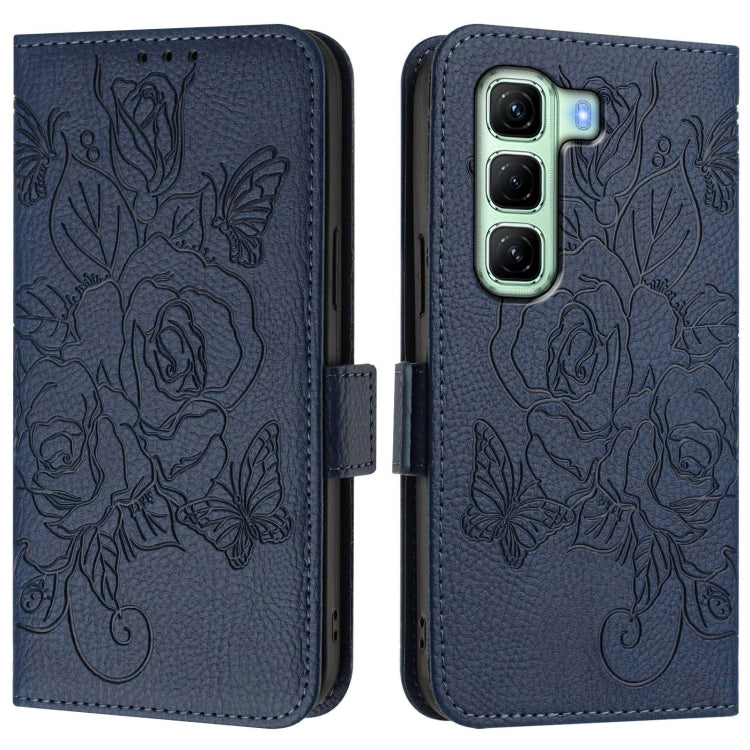 Funda de Cuero Antirrobo RFID con Relieve para Infinix Hot 50 4G (Azul Oscuro)