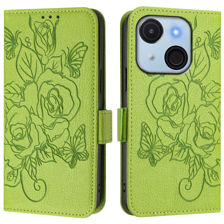 Funda de Cuero Antirrobo RFID con Relieve para Teléfono Itel A50C (Verde)