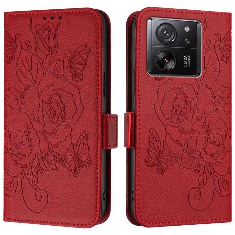 Funda de Cuero Antirrobo Rfid con Relieve Rosa para Redmi K60 Ultra / Xiaomi 13T / 13T Pro (Rojo)