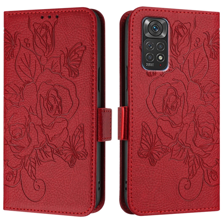 Funda de Cuero Antirrobo Rfid con Relieve Rosa para Redmi Note 11S 5G / Xiaomi Poco M4 Pro 5G (Rojo)