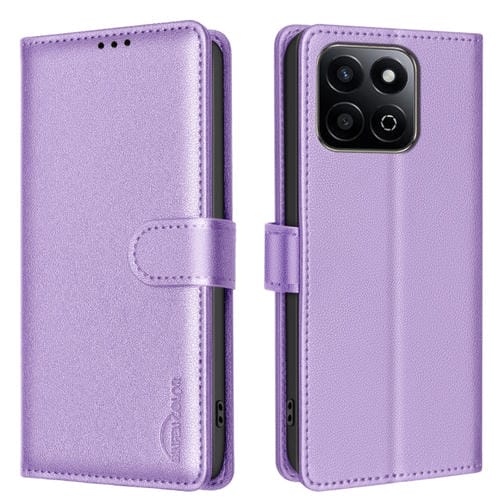 Funda de Cuero Antirrobo Rfid con Textura de Lichi para Honor 200 Smart/X7C (Morado)