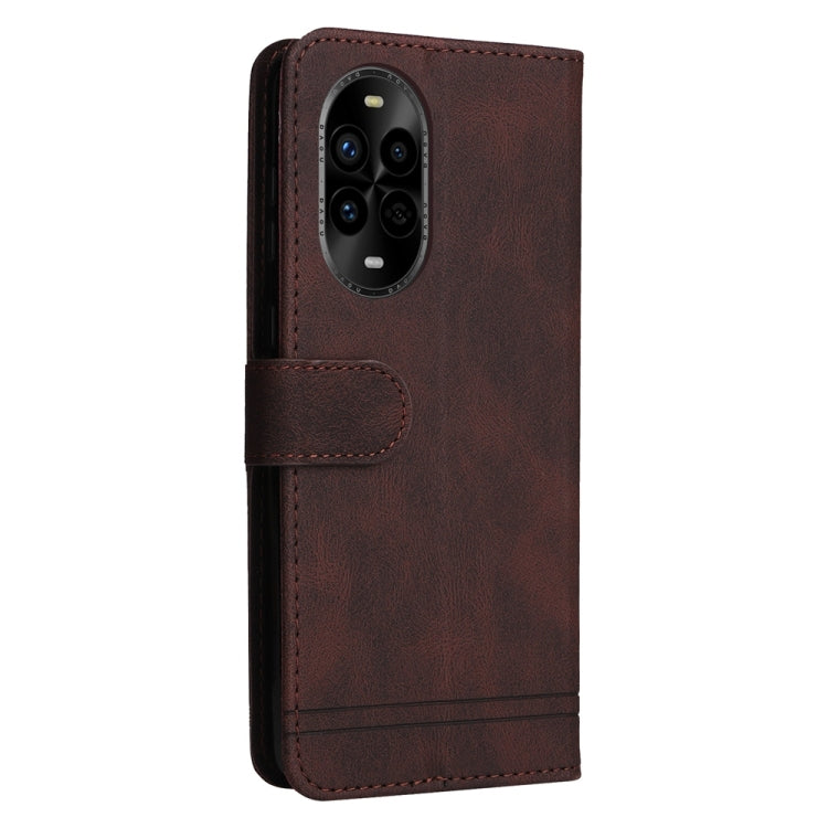 Funda de Cuero para Huawei Nova 13 Pro con Botones de Metal y Diseño Árbol de la Vida (Marrón)