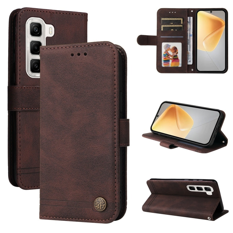 Funda de Cuero con Botones de Metal y Diseño Árbol de la Vida para Infinix Hot 50 4G (Marrón)