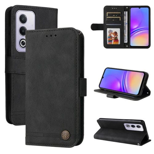 Funda de Cuero con Botones de Metal y Diseño de Árbol de la Vida para Oppo A3 Pro 5G Global/India (Negro)