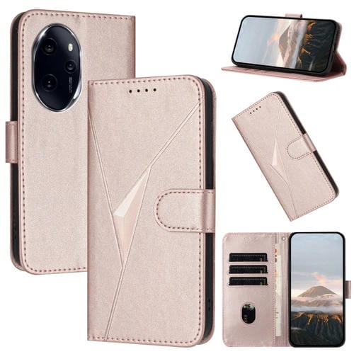 Funda de Cuero con Cierre de Hebilla y Diseño Triangular para Honor 100 Pro (Oro Rosa)
