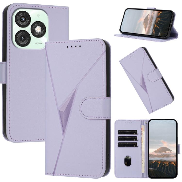 Funda de Cuero con Cierre de Hebilla y Diseño Triangular para Teléfono Itel A50 (Morado Claro)
