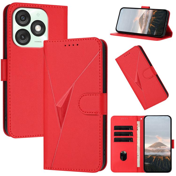 Funda de Cuero para Teléfono Itel A50 con Cierre de Hebilla y Diseño Triangular (Rojo)