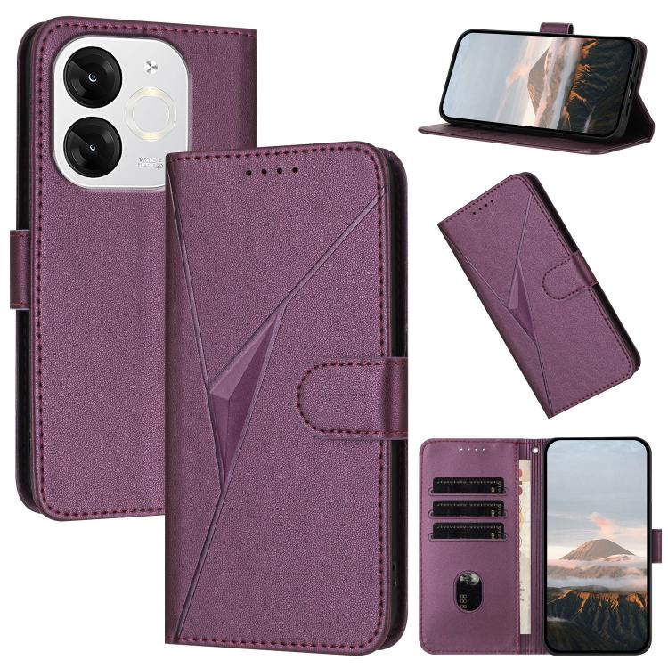 Funda de Cuero para Teléfono Itel A80 con Cierre de Hebilla y Diseño Triangular (Morado Oscuro)