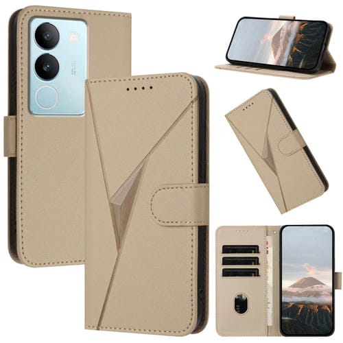 Funda de Cuero con Hebilla y Diseño Triangular para Vivo S17 (Dorada)