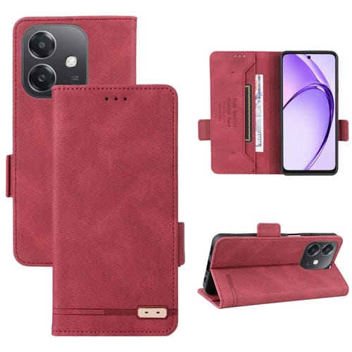 Funda de Cuero con Cierre Magnético para Teléfono Oppo A3X 5G India (Rojo)