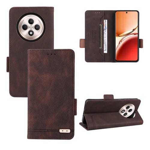 Funda de Cuero con Cierre Magnético para Teléfono Oppo Reno12 F 5G/4G (Marrón)