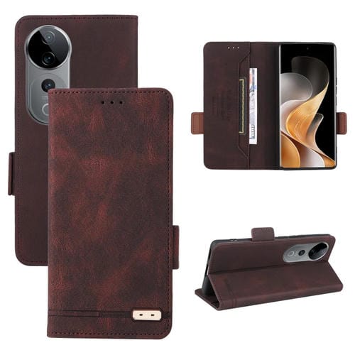 Funda de Cuero con Cierre Magnético para Teléfono Vivo S19 Pro (Marrón)