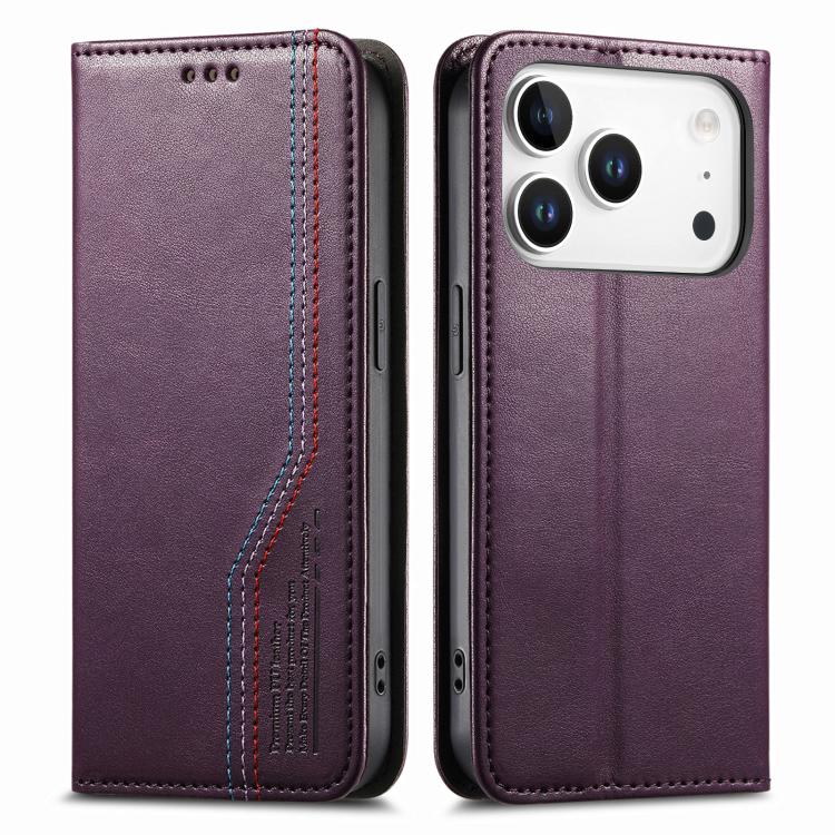 Funda de cuero con correa elástica y ventosa magnética para iPhone 17 Pro Max (morado)