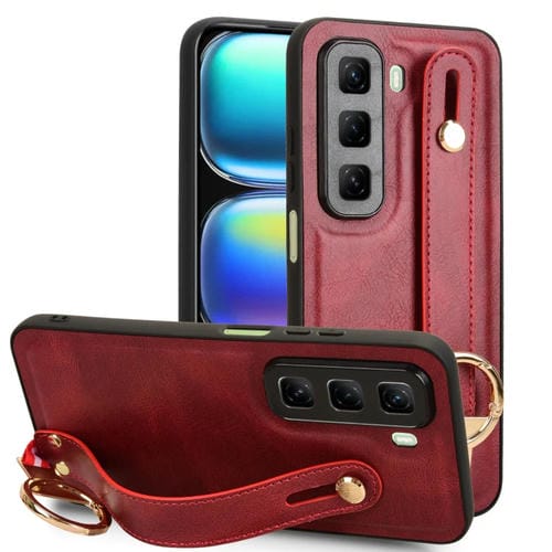 Funda de Cuero con Correa para Cuello para Infinix Hot 50 4G (Rojo)
