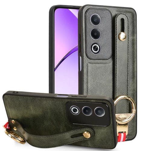 Funda de Cuero con Correa para la Muñeca para Oppo K12X 5G/A3 Pro Global (Verde)