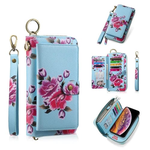 Funda de Cuero con Cremallera Multifuncional para iPhone X/Xs Pola Flower (Azul Cielo)
