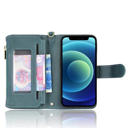 Funda de Cuero con Cremallera para iPhone 12 Mini Litchi Texture (Verde)