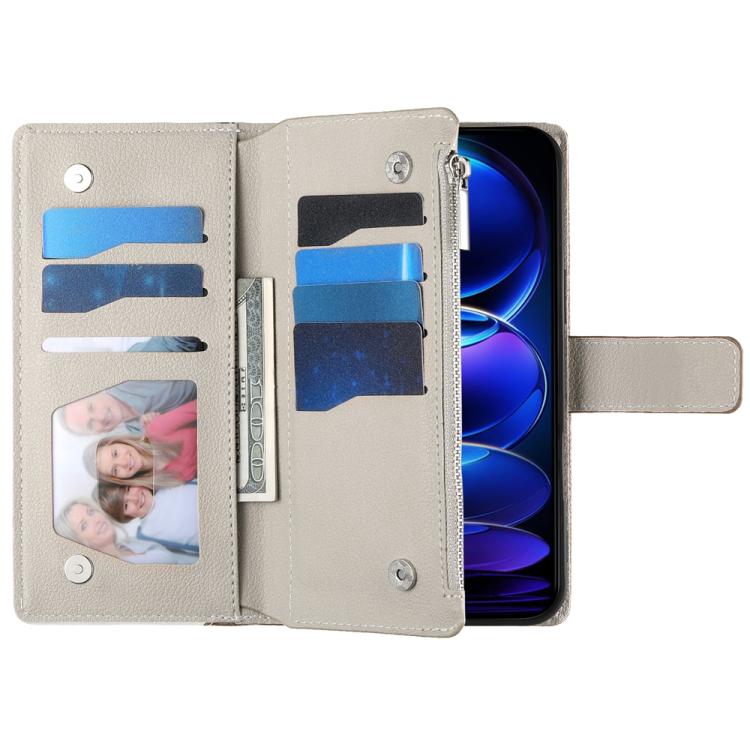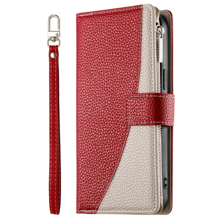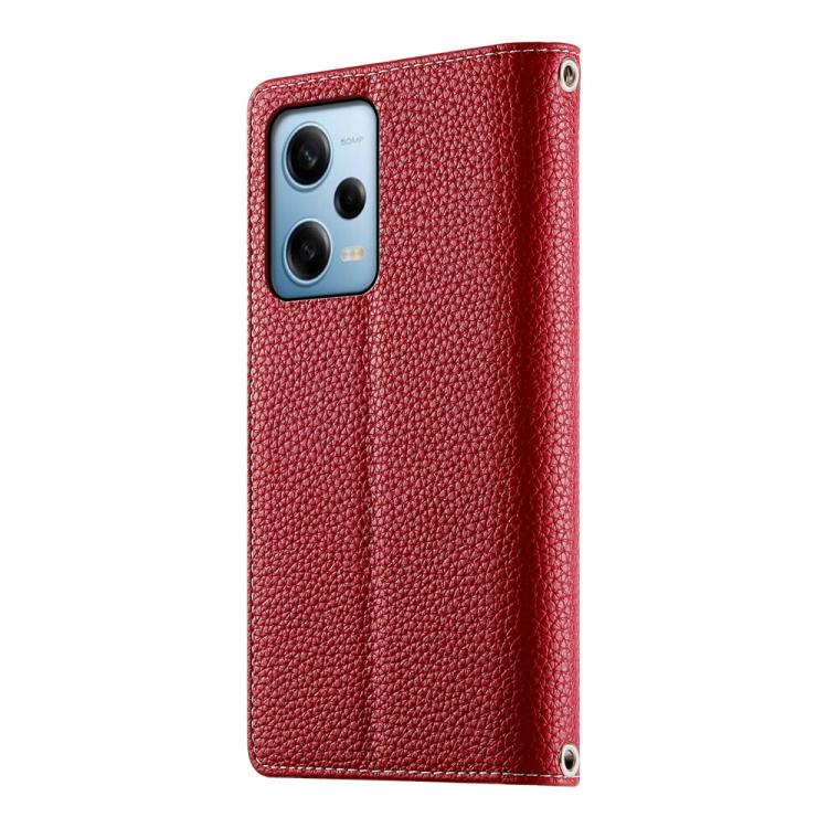 Funda de cuero con cremallera para Redmi Note 12 Pro 5G, con costuras globales, múltiples tarjetas y correa corta (roja)