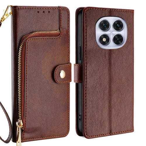Funda de Cuero con Cremallera para Redmi Note 14 Pro 5G (Marrón)