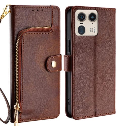 Funda de Cuero con Cremallera para Motorola Edge 50 Ultra (Marrón)