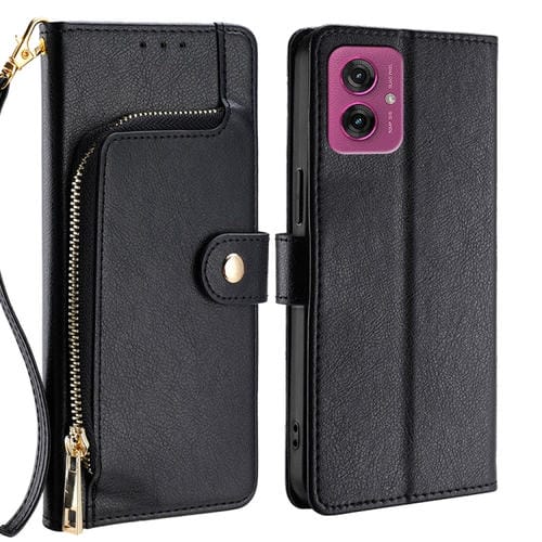 Funda de Cuero con Cremallera para Motorola Moto G55 5G (Negra)