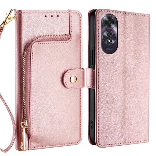 Funda de Cuero con Cremallera para Teléfono Oppo A60 4G Global (Oro Rosa)