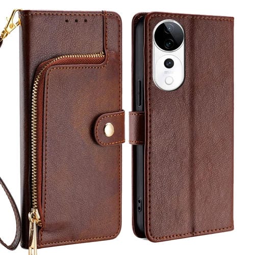 Funda de Cuero con Cremallera para Teléfono Vivo S19 Pro (Marrón)