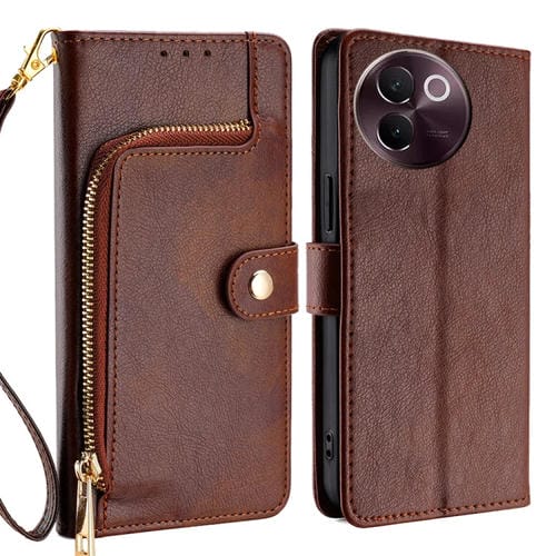 Funda de Cuero con Cremallera para Teléfono Vivo V30E 5G Global (Marrón)