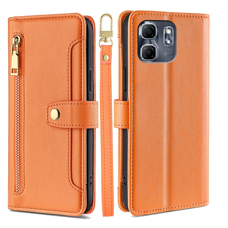 Funda de Cuero con Cremallera y Diseño Cruzado para Infinix Hot 50I 4G (Naranja)