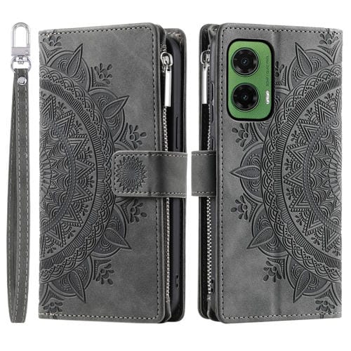 Funda de Cuero con Cremallera y Múltiples Tarjetas para Motorola Moto G35 (Gris)