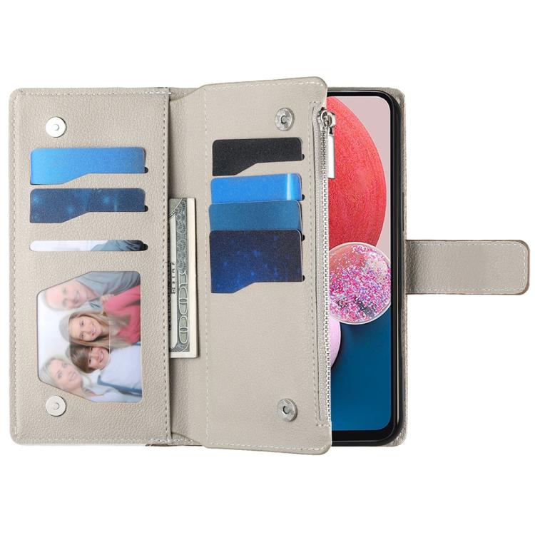 Funda de cuero con cremallera y múltiples tarjetas para Samsung Galaxy A13 4G / 5G / A04 / A04s, con costuras y correa corta (marrón)